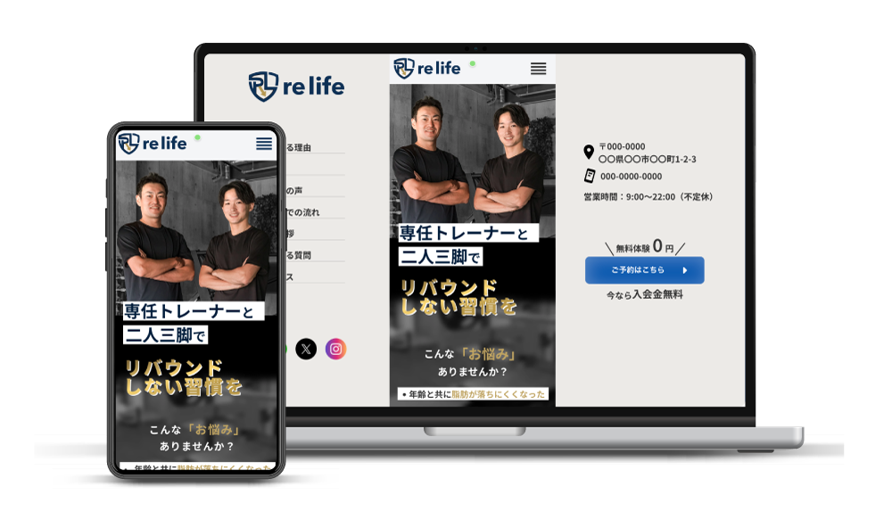 架空の個人専用パーソナルジムのLPとして作成しました。